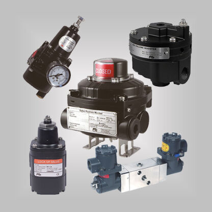 Akcesoria dla napędów pneumatycznych m.in. filtry i reduktory ciśnienia, przetworniki elektropneumatyczne, wyłączniki krańcowe napędów pneumatycznych, wzmacniacze powietrza, zawory blokujące, zawory elektromagnetyczne sterujące